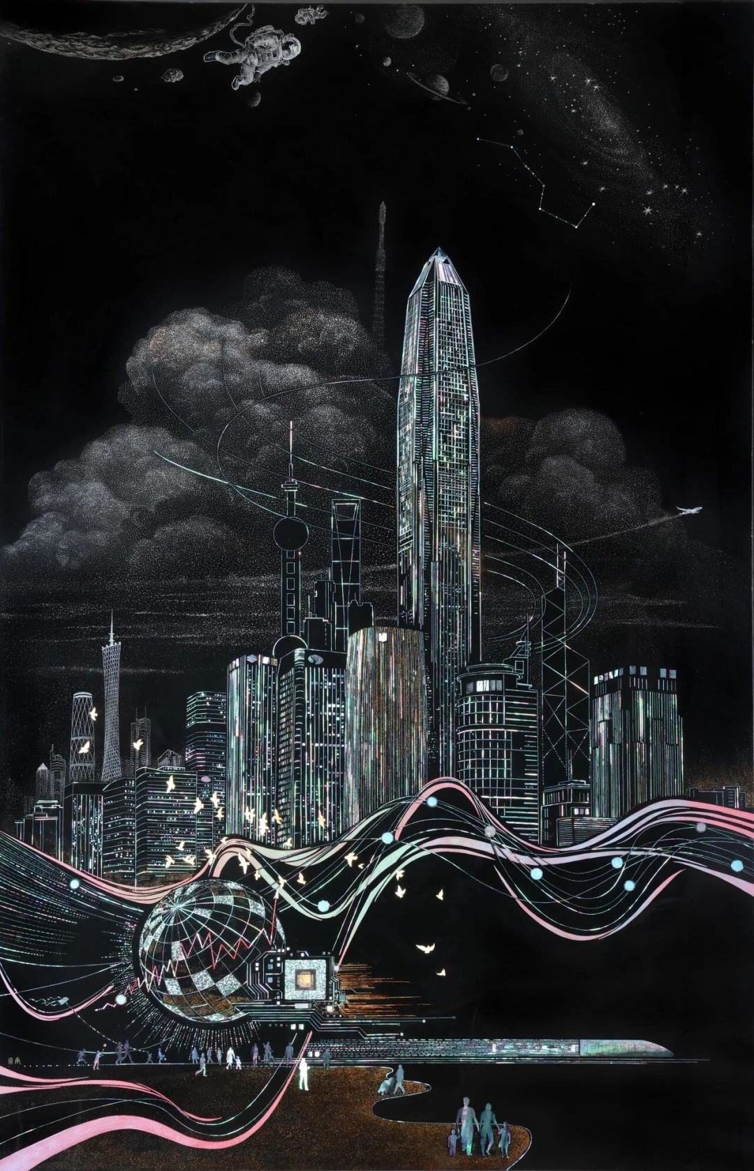 肖丽娟 漆画 《下一站:幸福新城》50x80cm