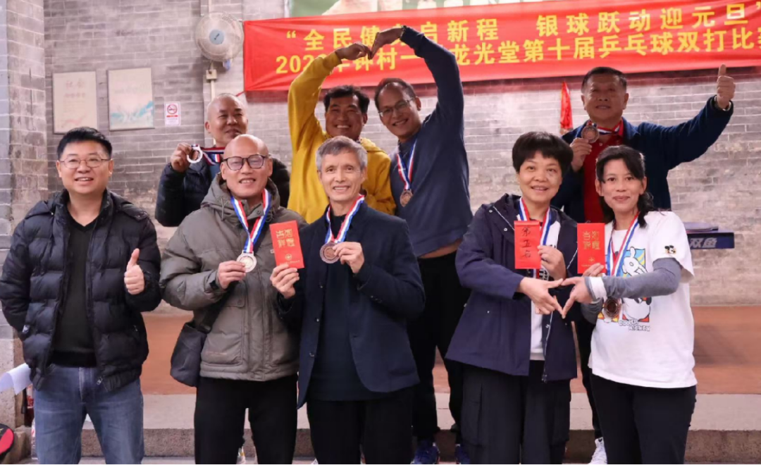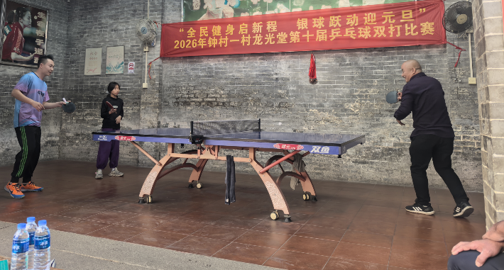 此外,全民健身活动同步开展。钟村一村在龙光堂文化活动中心举办了“全民健身启新程•银球跃动迎元旦”——2026年钟村一村龙光堂第十届乒乓球双打比赛,吸引了来自钟村街各村共24组双打选手参与。比赛历时多日,选手们在赛中切磋技艺、锻炼体魄,展现出积极向上的精神风貌。