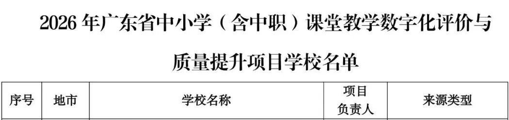 近日,广东省教育厅公示2026年广东省中小学课堂教学数字化评价与质量提升项目学校遴选结果,经组织专家遴选,拟确定项目学校280所。东莞市共有46所学校入选,其中小学24所,中学19所(含初中、高中、完中),中职3所,总数位列全省第二。