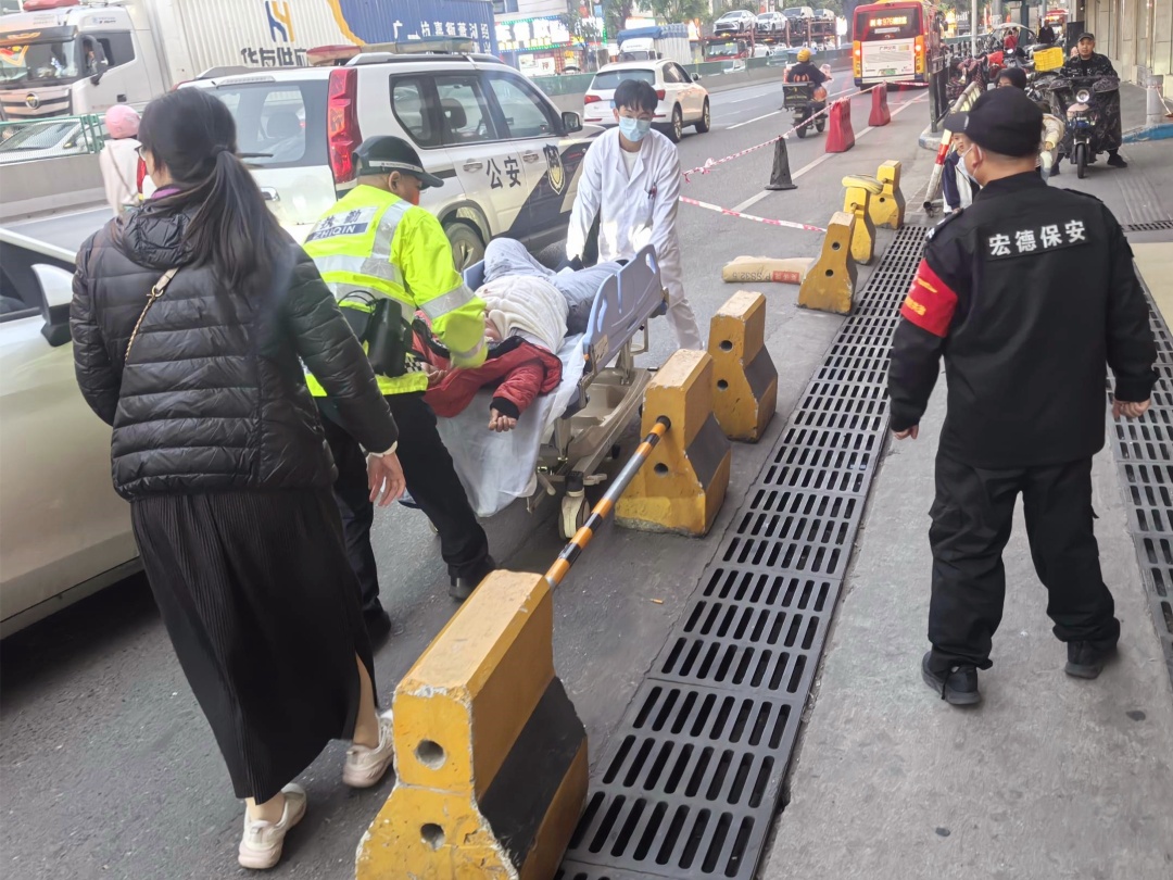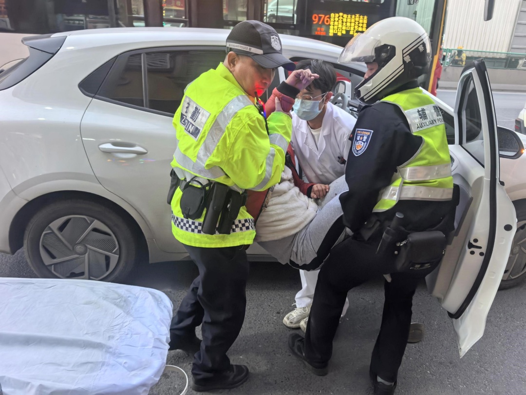 “我现在开车送她去太和医院。白云大队,右转灯放常绿。”紧急关头,周国彰当机立断接过求助车辆驾驶权,化身“临时急救司机”。同事刘亮锋则全程紧密协同配合。与此同时,大队迅速向指挥中心上报现场情况,统筹协调沿线为救援路线开辟保障通道。
