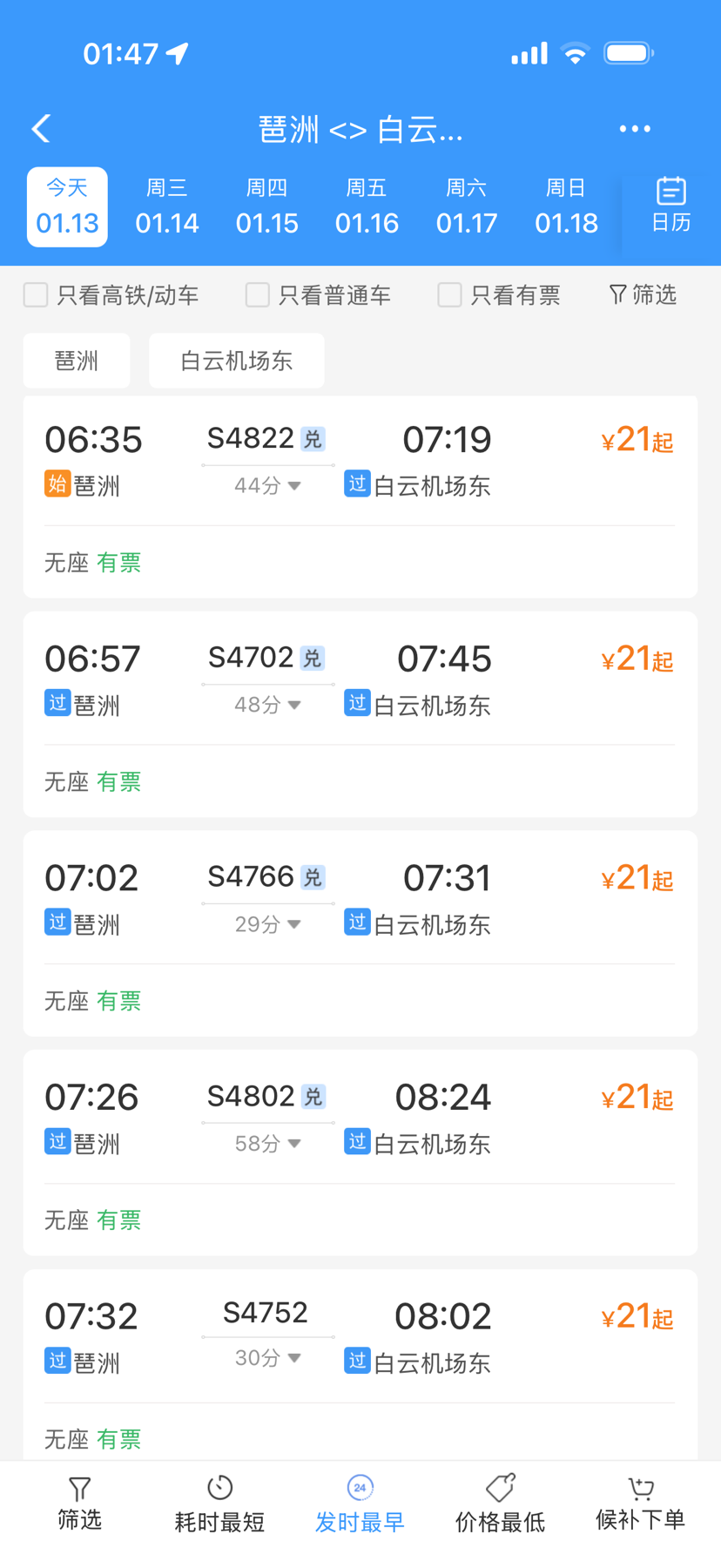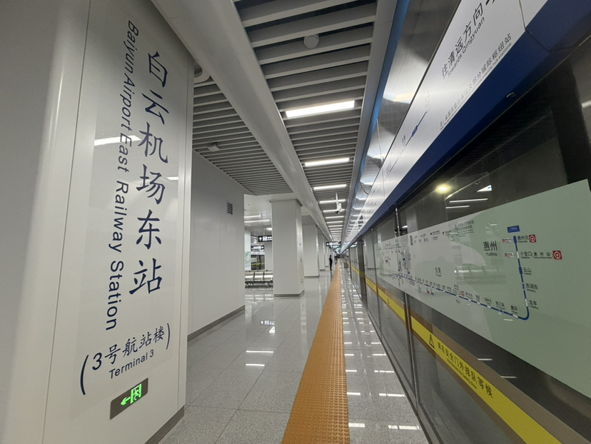 目前旅客可以通过“12306”APP查询城际铁路的班次时间并进行购票,也可以刷羊城通搭乘城际铁路。如果从城际琶洲站出发前往白云机场T3航站楼,购票选择的站点是“白云机场东”,快车车程29分钟,如果是“站站停”的慢车,车程则需要58分钟。