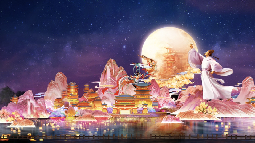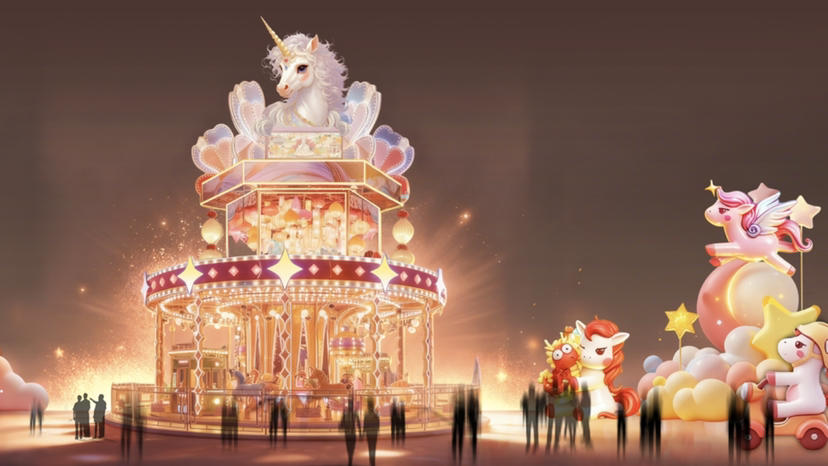 灯会园区将按“三轴五区”进行布局,主干道以“时光之河”为主线,整体空间契合“起承转合”的诗意节奏,串联五大特色展区,构建一个“梦幻奇境之城”。
