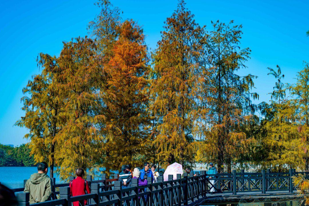 广州南沙区落羽杉正换上“美拉德”色的冬装,金黄、橙红、褐红交织,随手一拍都是大片。