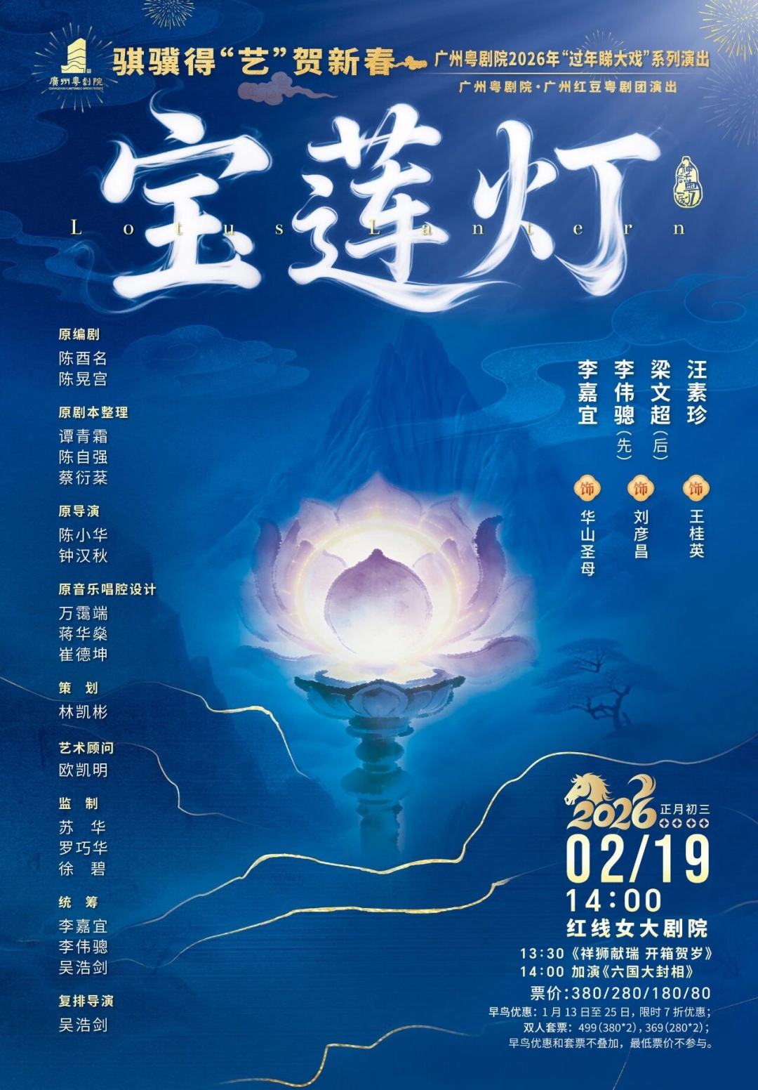 好戏已备,让我们相约红线女大剧院,在悠扬粤韵中,迎接一个充满艺术气息的马年。