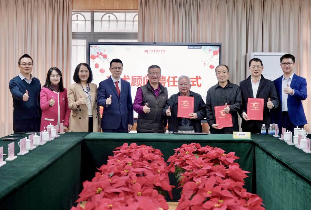 接着,广州六中刘建祥书记为三位重量级艺术名家颁发艺术顾问聘书,正式聘请刘斯奋、何俊华、王永三位先生为学校艺术顾问。