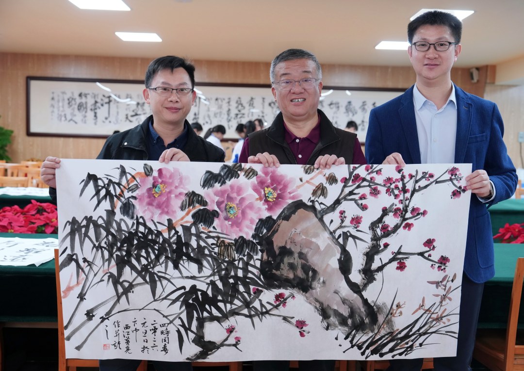 同学们围在艺术名家身旁,近距离观摩笔墨运用的技巧,不时提问交流。艺术名家们耐心指导,从握笔姿势到章法布局,从立意构思到色彩搭配,倾囊相授创作心得。有同学忍不住提笔尝试,在名家的点拨下完成了自己的第一幅书法作品,脸上满是成就感。活动现场墨香四溢,欢声笑语不断,成为元旦佳节最动人的风景。