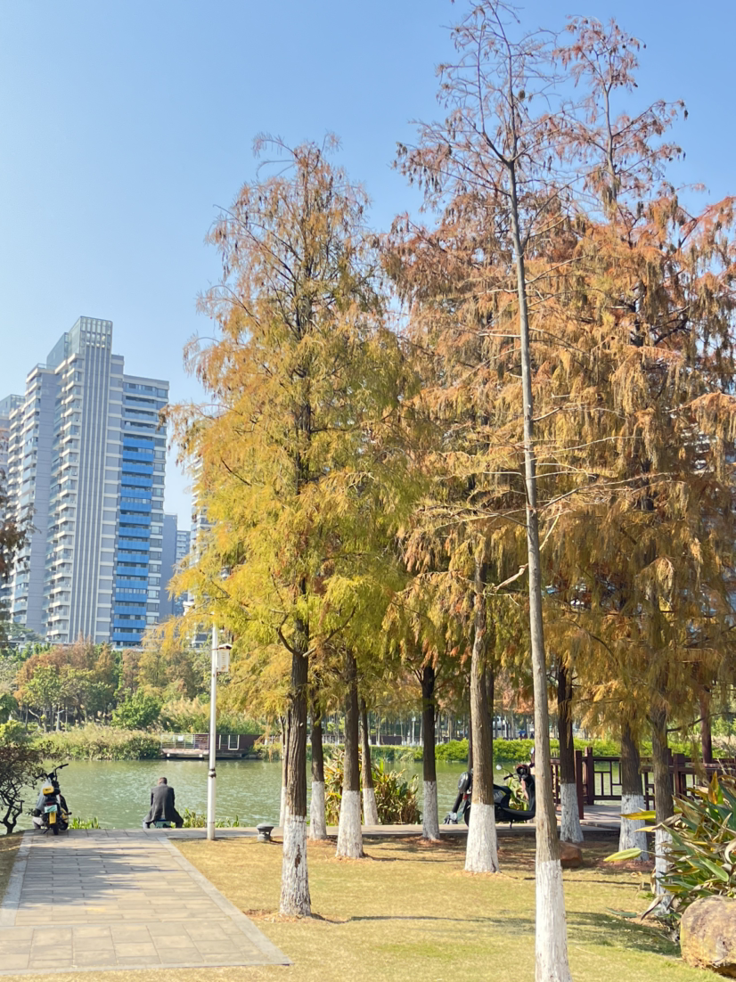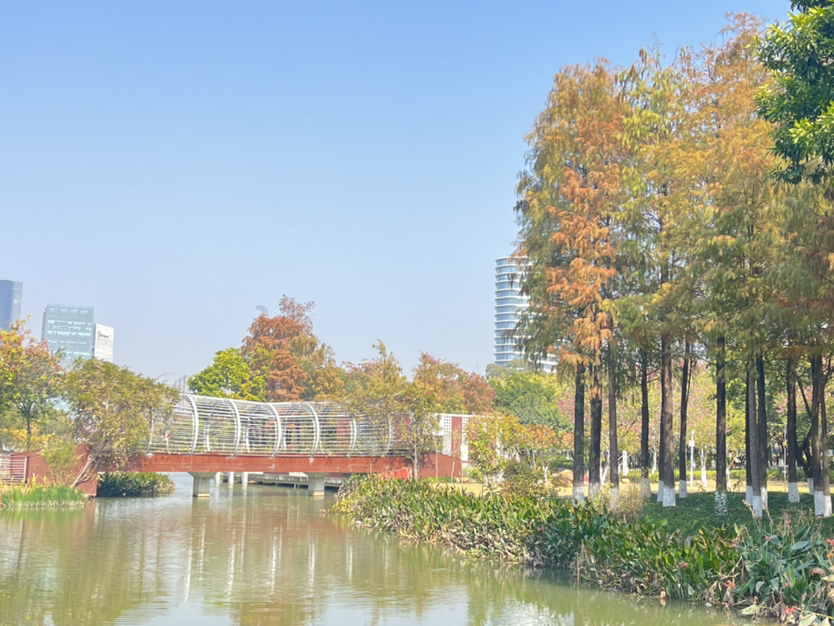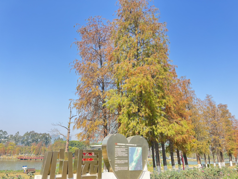 · 核心看点:位于南沙中心城区,河岸两侧落羽杉连片成景,搭配大片开阔绿地,冬日氛围感拉满。