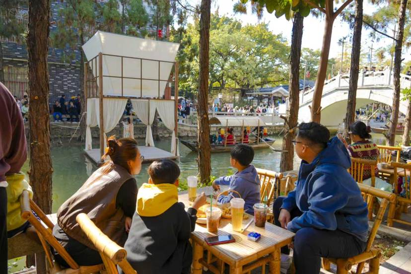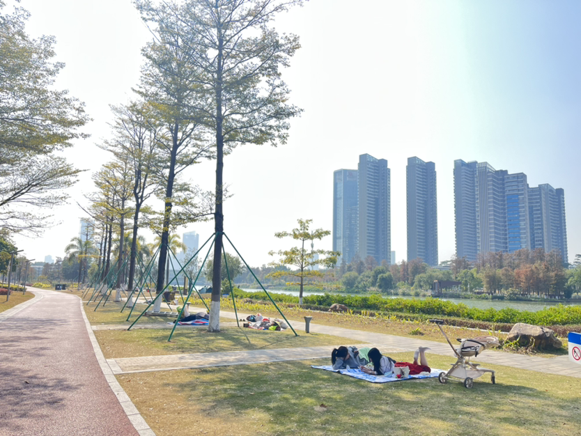 蕉门河迎来最佳赏玩季节,河边人气越来越旺,即便工作日,河边也随处可见搭帐篷、铺垫子撑桌子露营的人群,钓鱼、打牌、野餐、唱歌、休憩的人络绎不绝,惬意又舒服,也适合慢跑、骑行、亲子游玩,休闲属性拉满。趁着天色晴好,钻到河边树丛中寻找自己的小确幸吧!