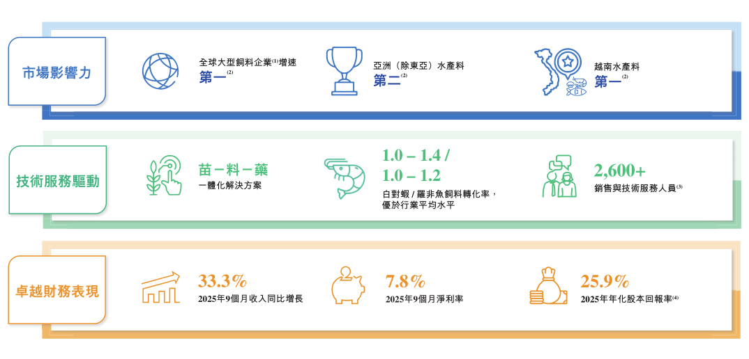 在业务上,海大国际远非简单的饲料销售商。它以饲料为核心(此业务占营收96.9%),将种苗和动物保健业务深度融合,为养殖户提供从优质种苗、科学配比饲料到疾病防控的全周期解决方案。