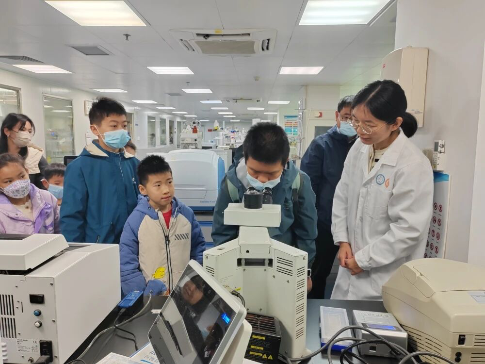 在生物样本资源库,讲解员深入浅出地讲解了超低温冰箱及液氮罐对样本存储的重要作用。在动物实验中心,科研人员介绍了各类动物实验的仪器,并带领大家观摩小鼠无创实验的操作。讲解员同步讲解了动物实验的伦理原则、科学价值及其在药物研发中的关键作用,引导孩子们树立善待生命、尊重科学的正确观念。