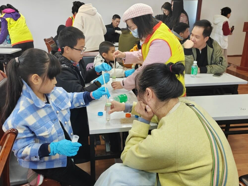 在实验互动环节,实验室工作人员通过启发式引导的方式向孩子们科普了什么是DNA,带领孩子们从香蕉中提取DNA,讲解基因检测在呼吸疾病研究中的应用。现场,在多方的指导和协助下,孩子们变身“小小生物学家”,动手体验从香蕉中提取DNA。当看到白色絮状的DNA从溶液中析出时,孩子们成就感十足,兴奋地展示着自己的“科学成果”。“科学太奇妙了!”孩子们纷纷表示。