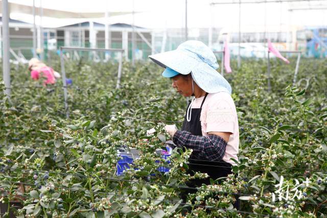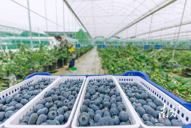 1月的广州花都,现代化蓝莓种植园迎来采摘季。饱满的果实犹如缀在枝头的蓝宝石,在岭南的阳光下闪着诱人的光泽。