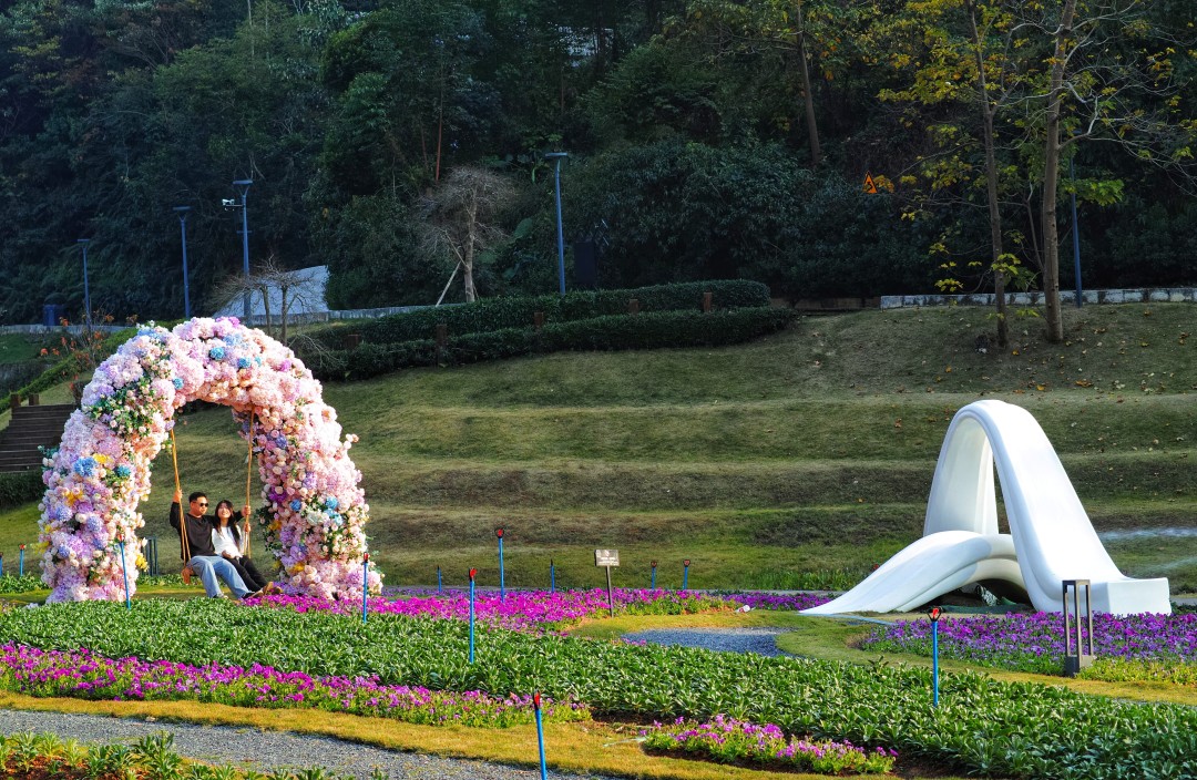 游客在这里可以一览广州“网红”山谷图书馆的曼妙身姿,再打卡随风摇曳的向日葵花海,在田园画卷中感受冬日暖意。