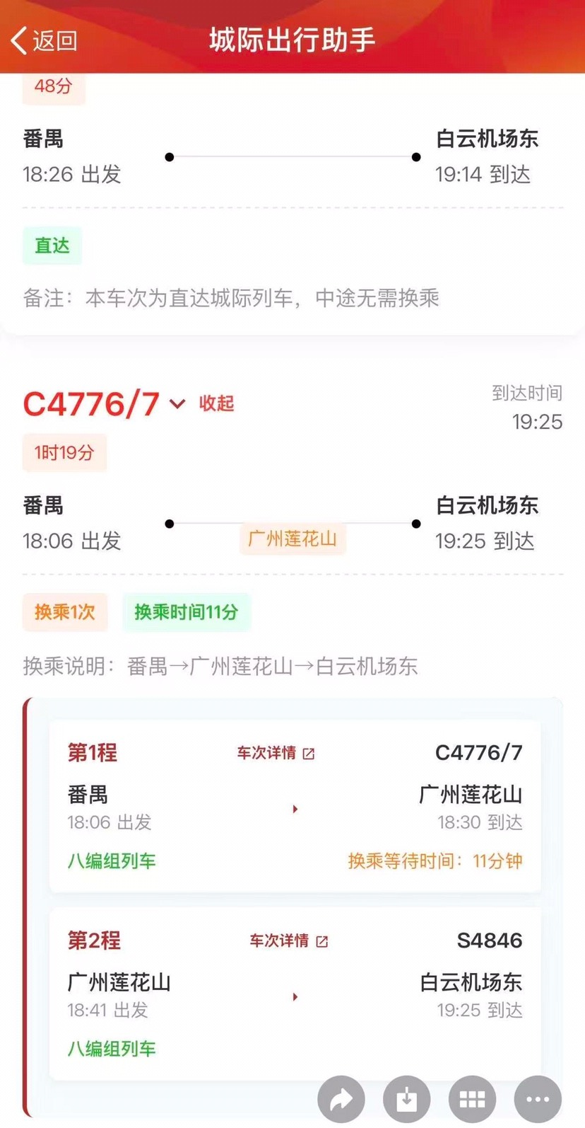广东城际温馨提醒,受实际运行条件影响,部分车次的到站信息可能与查询结果存在细微差异,请以车站现场公告及列车实际到站为准。