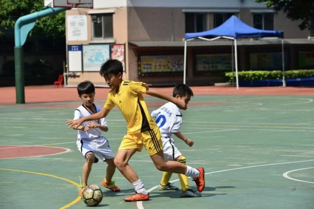 李昊在荔湾区蒋光鼐纪念小学读书时参加比赛打中场。
