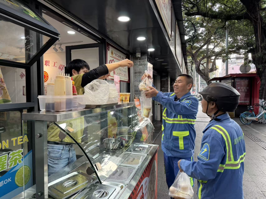 广州市工人文化宫户外劳动者工会爱心驿站启动了“工会小站·贴心大爱”行动,为环卫工、外卖骑手等劳动者送上一份份热气腾腾的爱心早餐。“天刚亮就出来干活,这份早餐真是太及时了!”环卫工李师傅接过早餐时,脸上露出了朴实的笑容。
