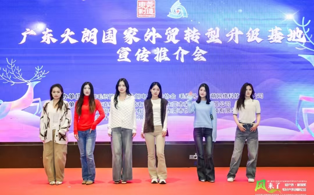 全球每5件毛衣就有1件来自东莞大朗,这座不产一根羊毛的“世界毛织之都”正以设计、智能与绿色叩开华东市场。广东大朗国家外贸转型升级基地宣传推介会本月9日在杭州临平举行,活动现场黛妃、昕升、优美、喜纺、鸿企、杉励萌共6家大朗代表性毛织企业携手亮相,通过动态走秀、静态展示与品牌采购对接等形式,向华东地区时尚界、采购商全面展示大朗毛织的产业实力与创新成果。