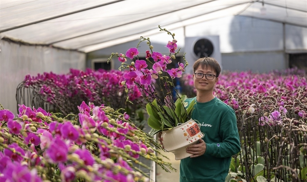 广州万顷洋农业发展有限公司相关负责人介绍,自2023年落户峡石村以来,该公司以蝴蝶兰产业为核心,依托白云区的区位优势和花卉产业基础,致力于将广州市白云蝴蝶兰产业园打造成为集科研、生产、电商、物流、文旅于一体的现代农业示范园区。目前,该园区已吸引30多家蝴蝶兰企业入驻,形成规模化种植与协同发展优势。预计到2026年年底,园区蝴蝶兰年产量将达到800万株,产值突破1亿元。