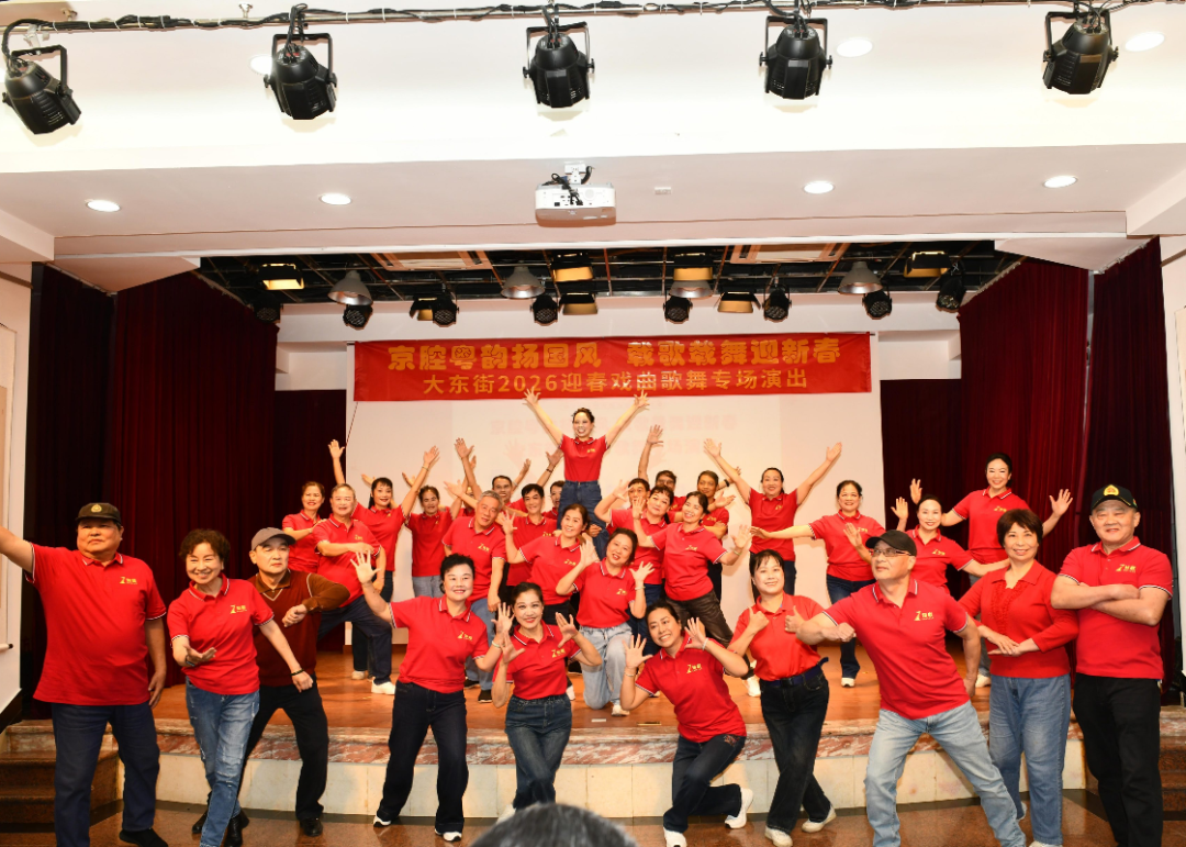 本次活动作为“广府味·幸福年”2026越秀春节系列活动的入选场次,由大东街文化站旗下知联艺术团、大东京剧社、天鹰艺术团等本土文艺骨干队伍联袂担纲,展现出大东街深厚的群众文化底蕴。