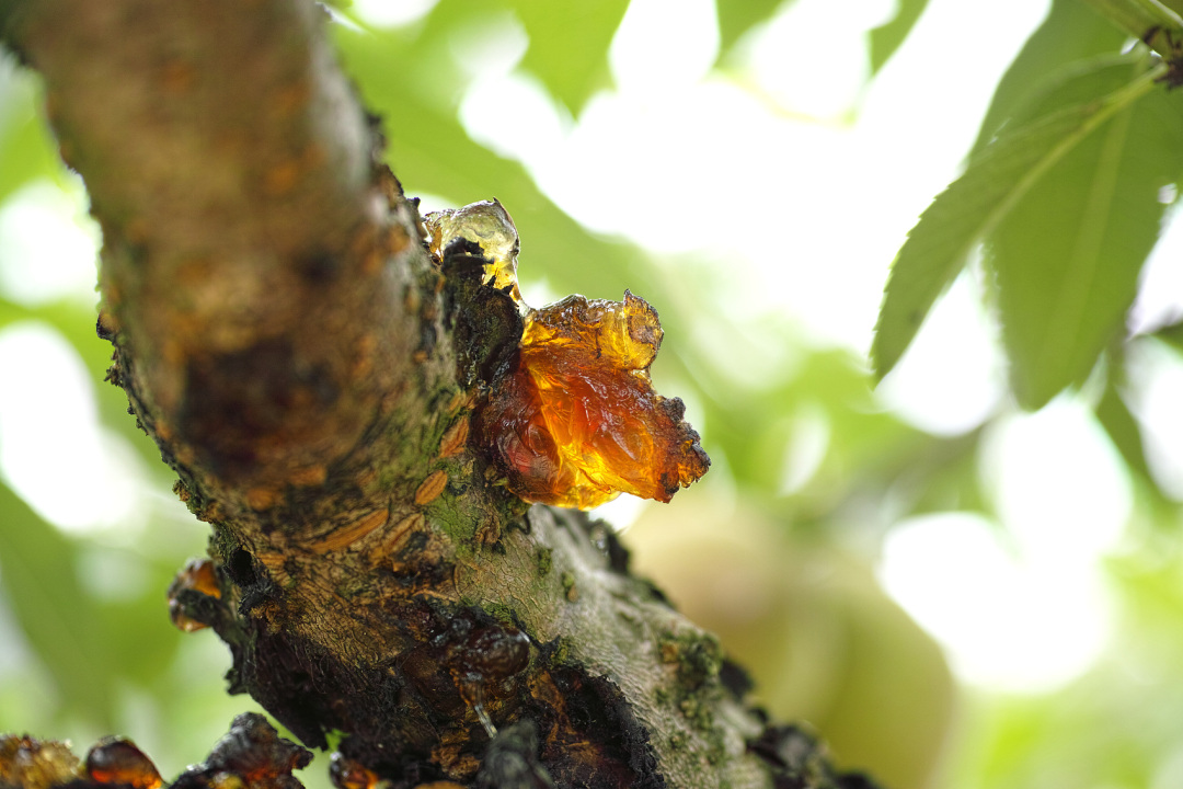 见过桃树的人可能会留意到,在桃树的树干或枝条上,常粘着一些淡黄色或棕红色、像琥珀一样的胶状物质,这就是桃胶。