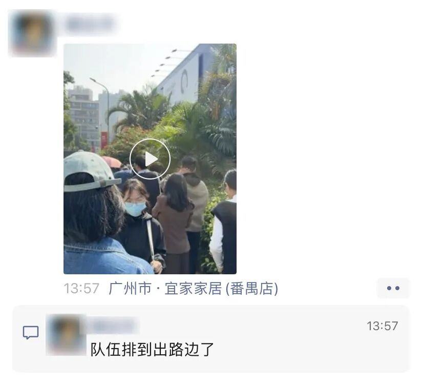 商场内主要通道几乎被购物车塞满,行走困难。家居用品区的碗碟、收纳盒、灯具等小件商品区域聚集了大量顾客。在大型家具区,多款贴有“清仓特惠”红色标签的沙发、床架、书柜旁,围满了正在测量尺寸、拍照比对的市民,不少商品已挂上“样品已售”的标识。