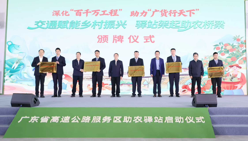 广东交通集团广韶高速瓦窑岗服务区、广贺高速四会服务区、江罗高速新城服务区、揭博高速瓦溪服务区、广清高速横荷服务区等5对服务区被授予“广东乡村振兴助农驿站”,为高速公路服务区打造展示广东特色文化、展销特色农产品、品尝特色美食搭建起全新平台。