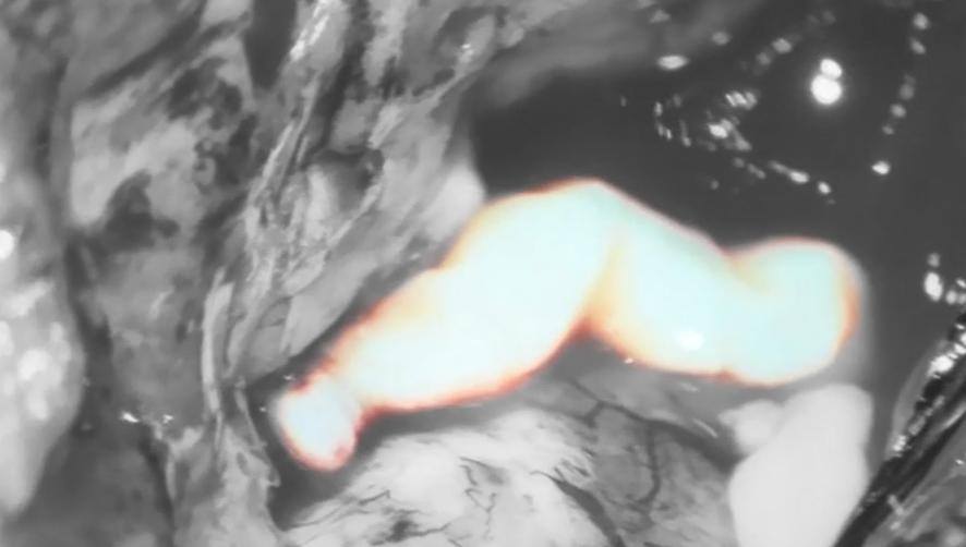 神经外十科团队使用电磁导航定位,在高清显微镜放大下手术。“看到一条面条状的活虫在蠕动。”手术医生小心翼翼地将寄生虫活捉,并很好地保护脑神经组织。