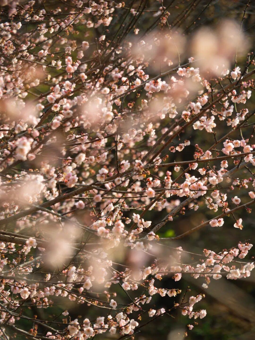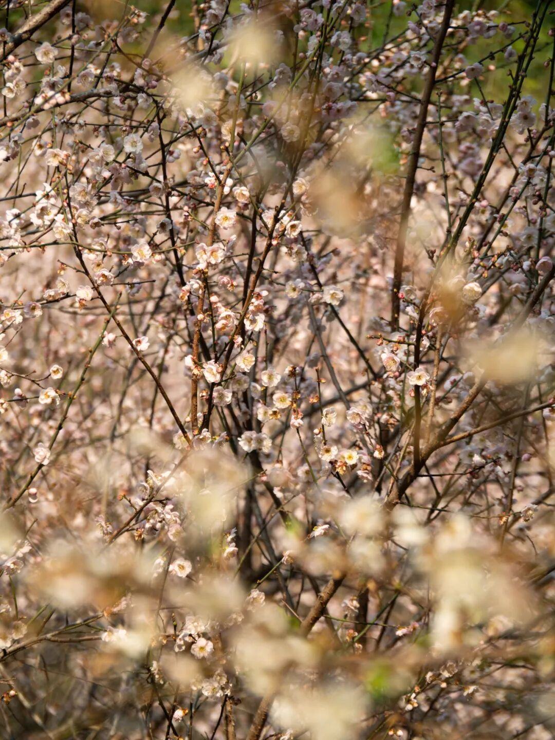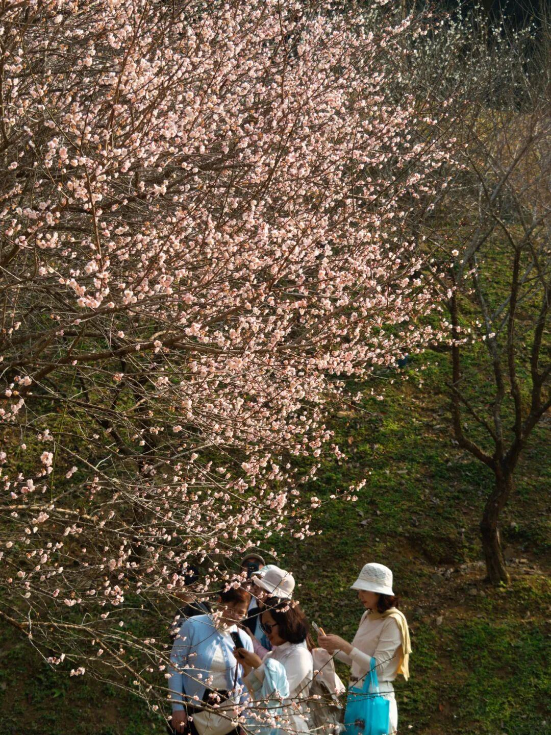 待到盛花期,白梅如瑞雪,粉梅似朝霞,整片山谷宛如雪国仙境,既优雅又壮观。