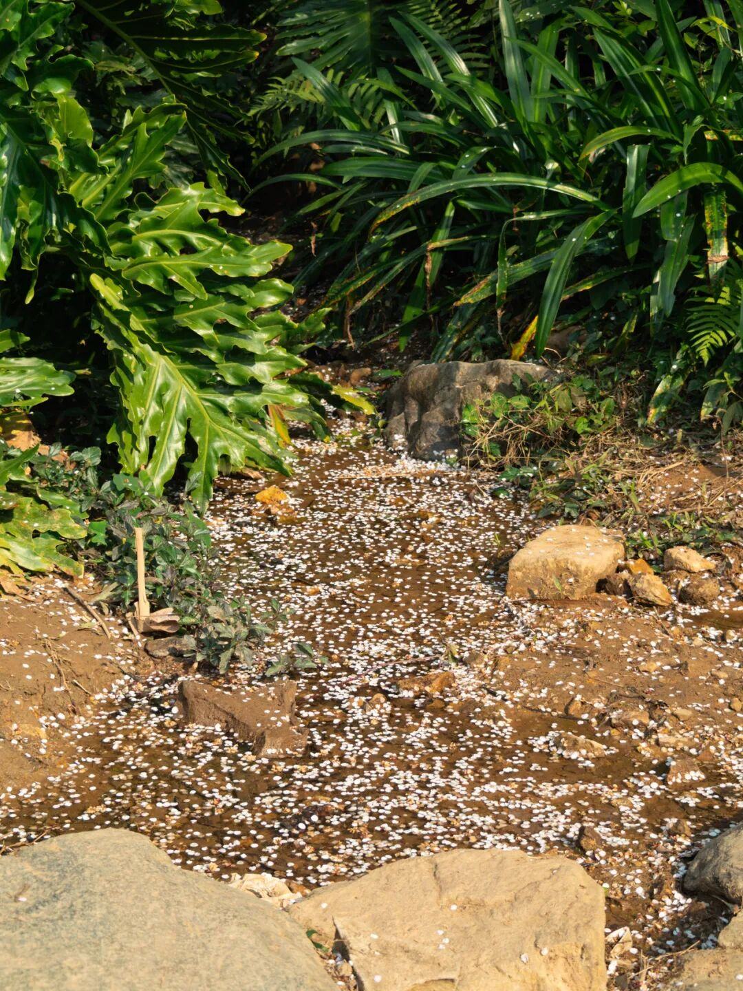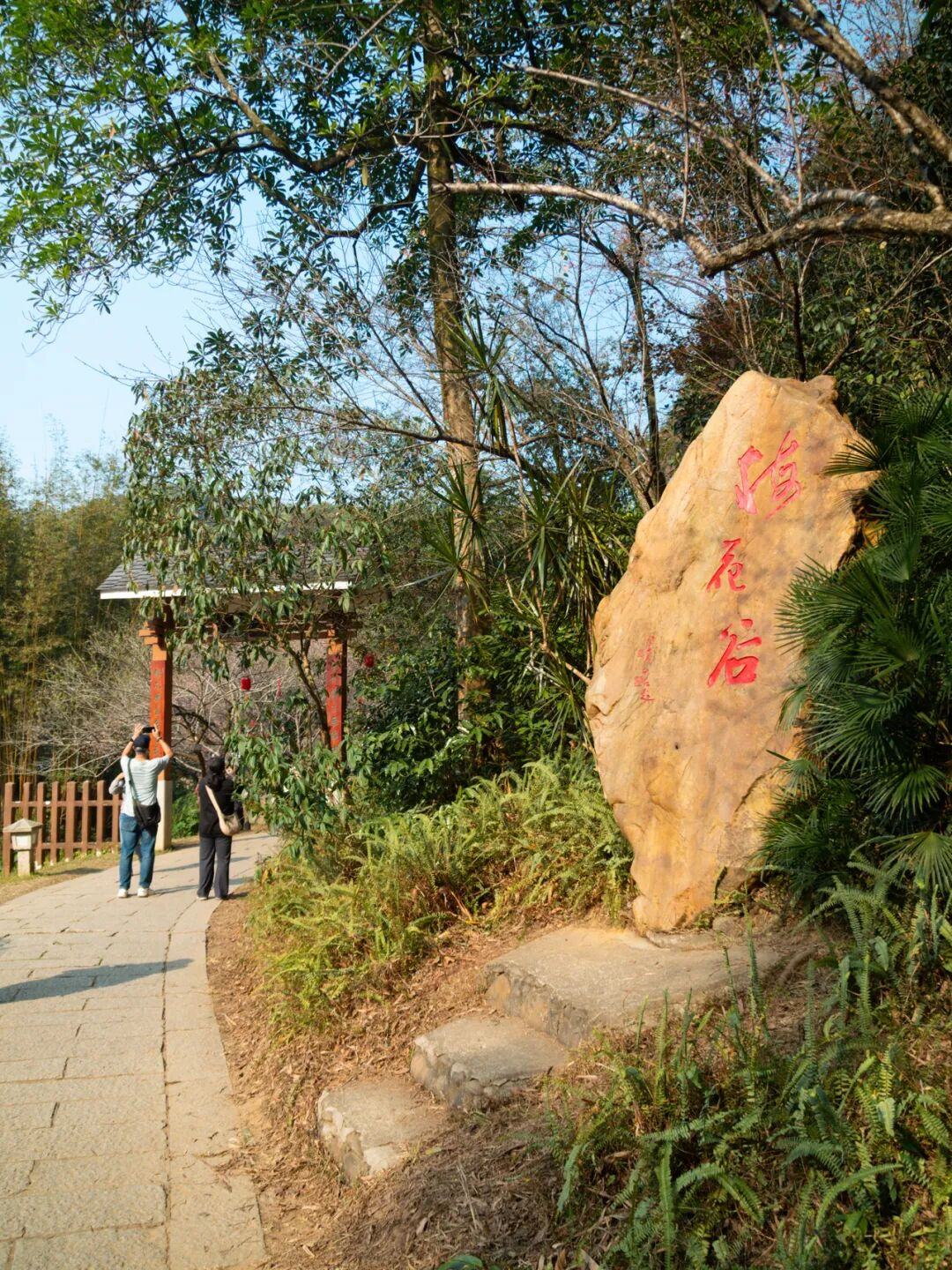 整个园区依山谷而建,一道浅浅的山泉水从山坡倾泻而下,形成阶梯式的小水潭,为梅园增添了几分灵动。