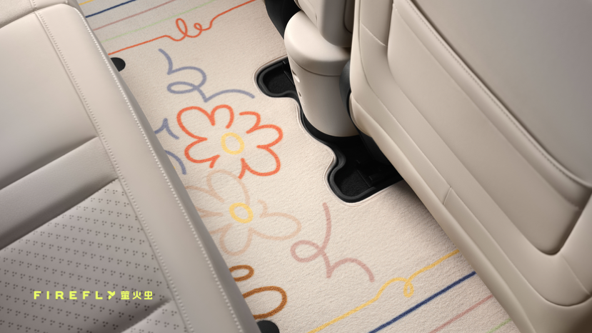 内饰采用温暖纯净的米色主题、细腻麂皮材质与外观呼应。细节处,从飞马羽翼刺绣点缀的“狂想之翼”软枕腰靠套组到饰以多彩天马元素的“步步有奇遇”定制地毯,让座舱成为兼具美感与实用的移动艺术空间。