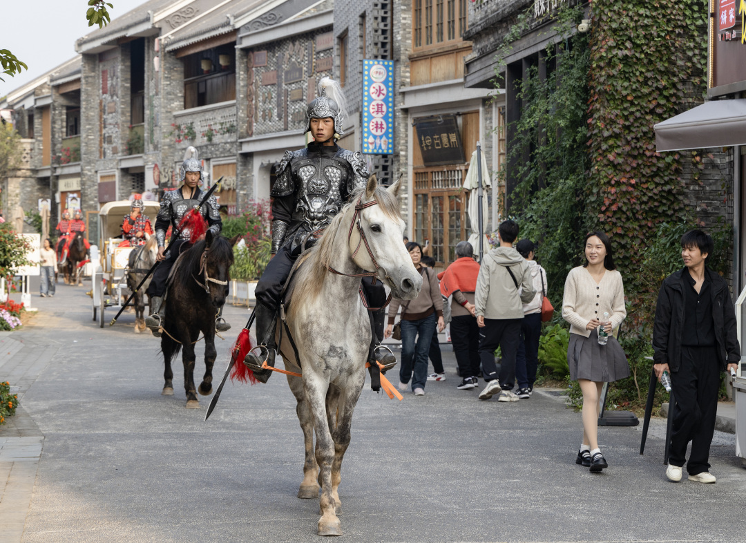 为迎接即将到来的马年,景区精心策划了一系列紧扣“马上”主题的游玩亮点。大型马战实景剧《赵佗征百越》每日上演,通过策马奔腾、马上激战等震撼场面,生动再现赵佗开疆拓土的史诗篇章,让游客在马蹄声与呐喊声中,感受“一马当先”的昂扬气势。此外,马队巡游等互动项目也将贯穿整个春季,为小镇增添热闹欢腾的节日氛围。