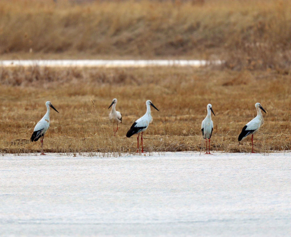 2020年3月22日,东方白鹳在查干湖畔休憩。查干湖通过巡护排查、伤鸟救治、智慧监测等举措,为候鸟提供优质的栖息环境和安全的迁飞通道。截至2025年11月3日,查干湖的国家一级重点保护鸟类由过去的8种增加至17种,国家二级重点保护鸟类由过去的35种增加至52种,东方白鹳、白皮鹭、青头潜鸭等珍稀濒危鸟类也会选择在查干湖筑巢繁殖。