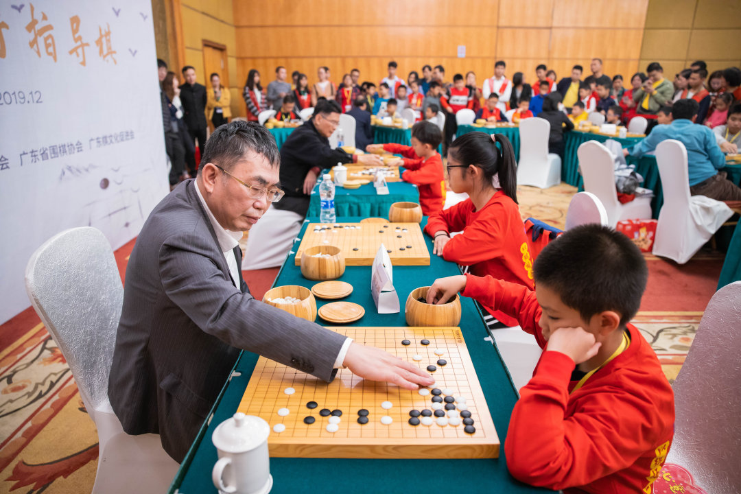 聂卫平于2019年在广东和小棋手们下指导棋。