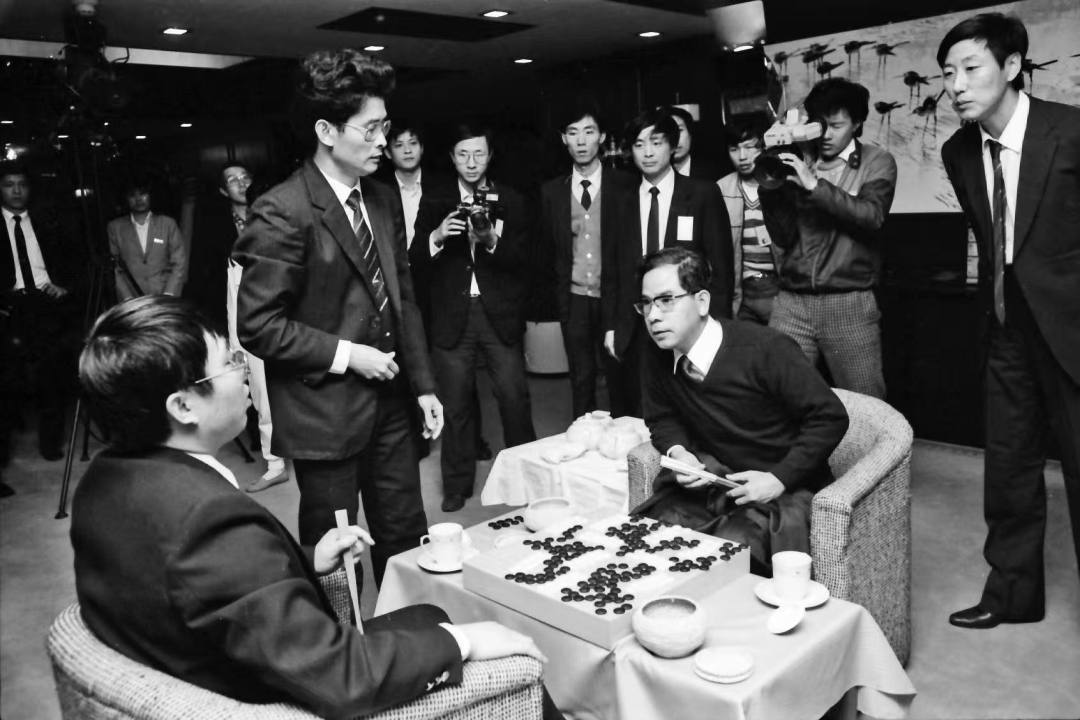 1988年的第4届中日围棋擂台赛,聂卫平在广州负于羽根泰正九段。左二为容坚行。