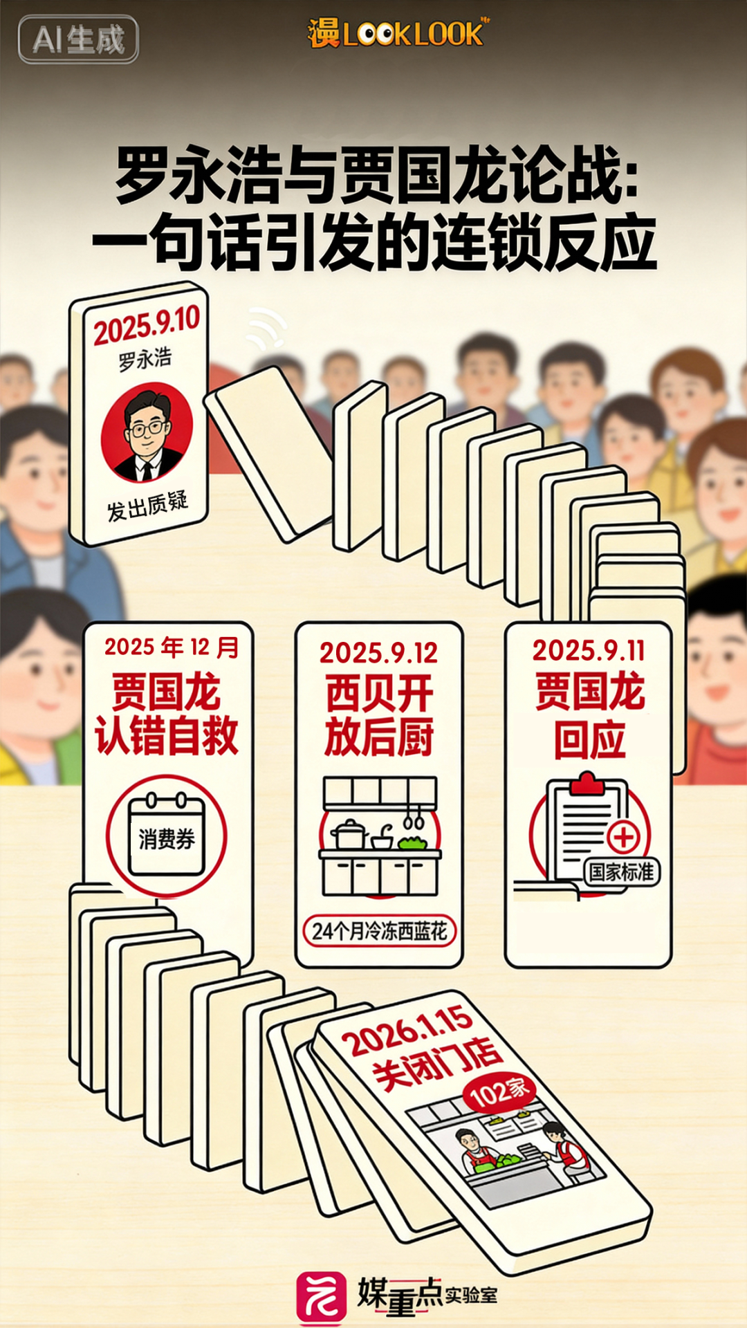 把时间拨回到去年9月,没人能预料到,罗永浩的那句“好久没吃西贝了,发现几乎全都是预制菜,还那么贵,实在是太恶心了”,会引爆一场持续126天的舆论风暴。四个月的时间,西贝一直在舆论漩涡中挣扎。回顾这场超长论战,贾国龙到底冤不冤?一桌好菜,为什么上演成超长连续剧?和本期漫LOOKLOOK一起看看↓