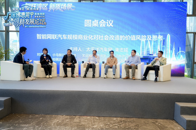 丰富多彩的主题分享环节后,由太平洋汽车网主持,小马智行、文远知行、滴滴自动驾驶、如祺出行等企业高管,共同探讨了智能网联汽车大规模商业化对社会出行模式的改造潜力、伴随的风险挑战及应对思路。