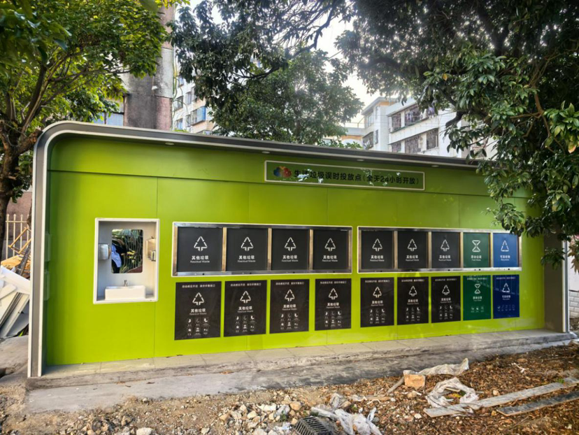 “以前这里的投放点破破烂烂的,周边还露天摆放着垃圾桶,现在比之前高大上多了,垃圾桶都放进了房间里,环境美观了,异味也小了,我们很满意。”一小区住户说。从露天垃圾站点到亭架式分类点,再到箱房式投放点,从化区正式迈入投放点建设3.0阶段,以“环境友好、投放友好、作业友好”为目标,推动投放点分类投放、临时暂存、智慧监管等功能深度融合,并统一设计款式,以灰、绿为主色调,让冰冷的市政设施变成了点缀街角的“微景观”,有效消解了“邻避效应”,激发了居民的认同感和参与热情,让分类行为融入审美体验,成为社区的一道风景线。