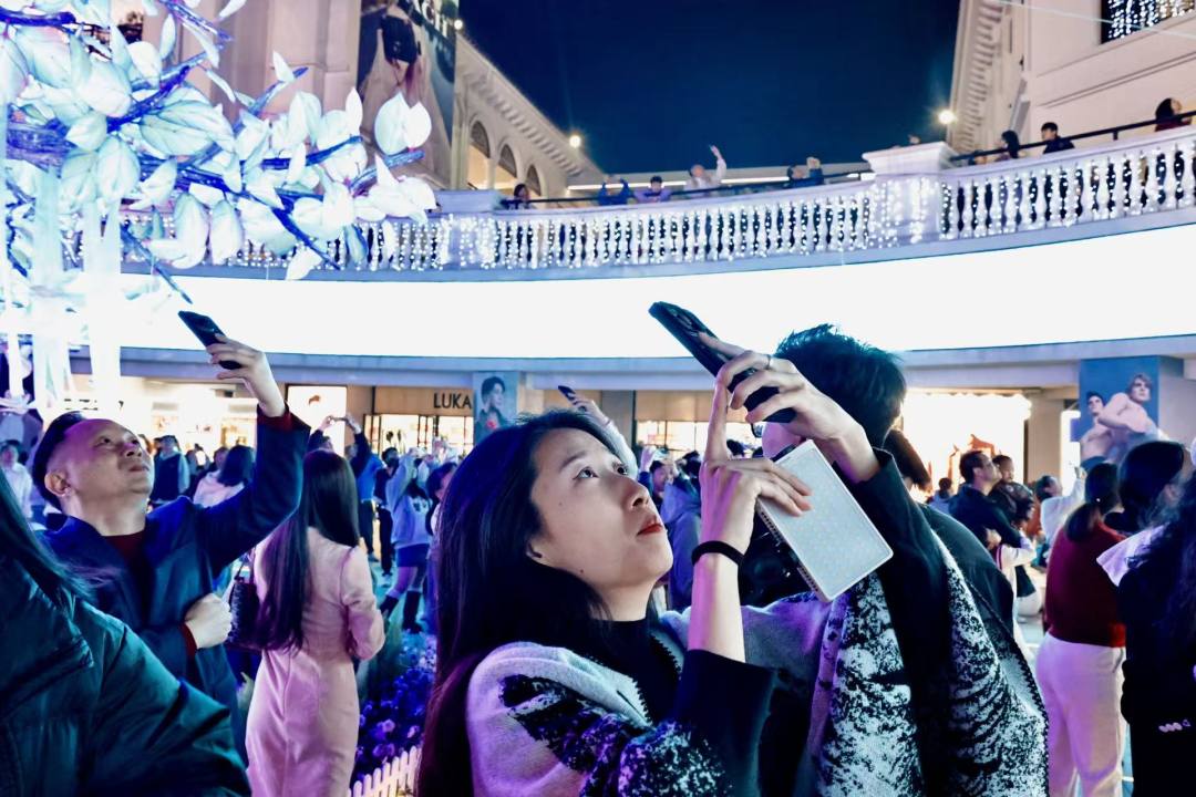 值得一提的是,春节活动的精彩远不止于此,活动期间游客可以在粉色流溪瀑布许愿池投下心愿,祈求新年好运;2月14日情人节当晚,8字楼梯处还将上演“心花怒放”心形冷焰火,为节日增添一份独特的浪漫。
