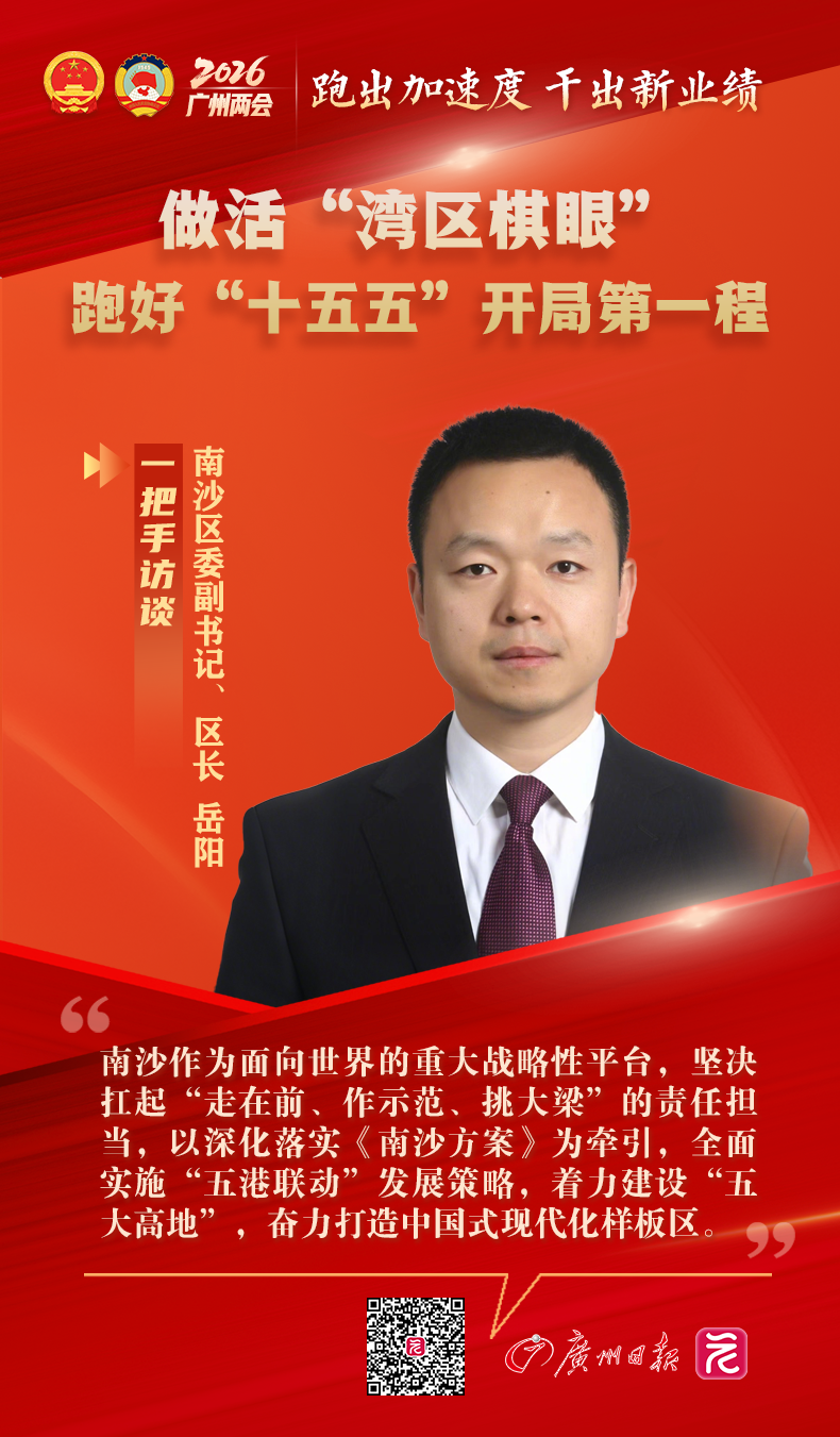 作为粤港澳大湾区建设的“棋眼”,南沙的开发开放始终承载着国家和省市的殷切期望。今年是“十五五”开局之年,也是实现《南沙方案》第二阶段目标的关键起步之年。我们将牢记嘱托、感恩奋进,牢牢把握市委市政府赋予的使命任务,锚定打造中国式现代化样板区总目标,以“开局就要冲刺、全域全年发力”的奋进姿态,以深化落实《南沙方案》为牵引,全面实施海港、空港、数港、金融港、人才港“五港联动”发展策略,着力建设开放、科创、产业、人才、宜居“五大高地”,奋力实现“十五五”良好开局。