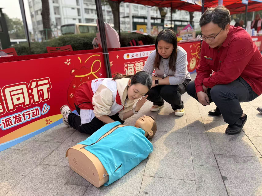 与此同时,应急安全主题的摊位也受到群众热捧:南方医科大学珠江医院的志愿者通过教具让市民学习心肺复苏与应急处理技巧;广州海珠供电局和广州燃气集团南区分公司的专家通过典型案例展示和讲解居家用电、用气安全的注意事项;更有学生志愿者担任“小小应急侠”现场宣讲应急安全知识,通过童声传递平安理念。据项目负责人介绍,“我是小小应急侠”项目还入选了由广州市社会组织联合会等单位主办的“社区志愿 奉献海珠”2025年社区志愿微创投项目。“海蓝蓝”消防志愿服务队、守正应急救援队、中国联通海珠区分公司、中国农业银行广州城南支行、广州市一汽巴士有限公司三分公司、民进海珠区基层委员会等爱心单位和团队也为市民群众带来了形式丰富的应急安全宣传和体验活动。