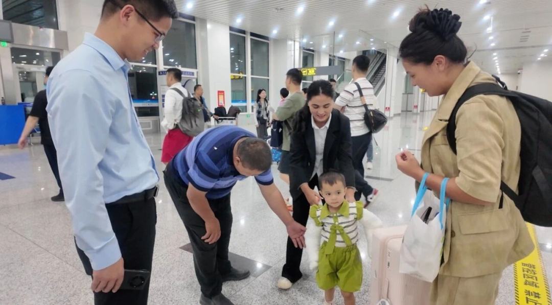 麦合丽娅在广州完成手术后,和家人返回家乡
