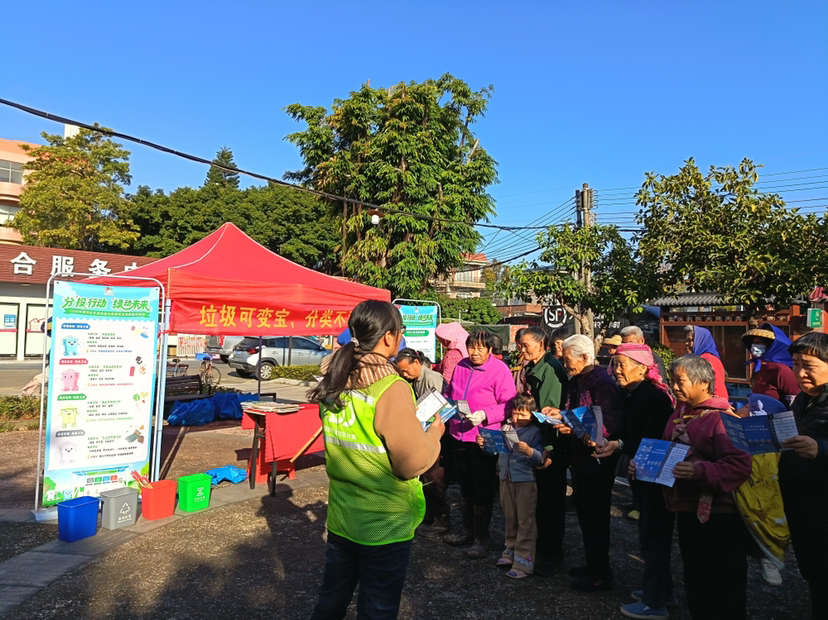 本次宣传通过“宣讲+实践”双向发力,全方位营造“学分类、会分类”的浓厚氛围。现场不仅设有清晰的分类知识展板,向村民发放指导手册,还安排了志愿者结合农村生活实际,开展面对面讲解与答疑。在此基础上,活动特别设置了趣味互动体验环节——分类投壶游戏吸引众多村民踊跃参与。大家在投壶答题的轻松互动中,既巩固了所学分类知识,也通过赢取环保袋等实用宣传品,收获了实实在在的参与感与成就感。这种“宣传引导+即时体验+正向激励”的模式,有效提升了村民的认知深度与行动意愿,让垃圾分类知识在欢声笑语中入脑入心。