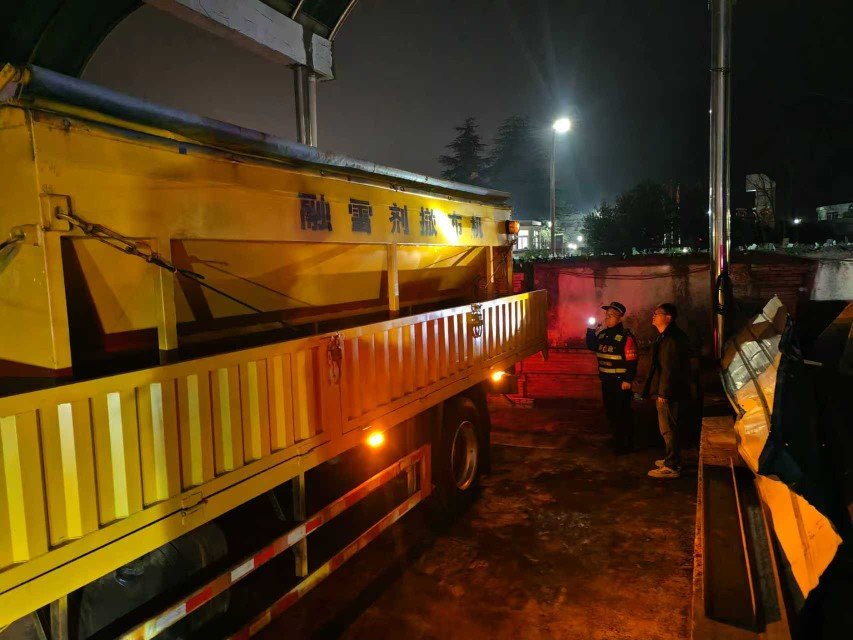 同时,两路组建专项巡查专班,采取“24小时值守+重点点位蹲守+动态巡回巡查”模式,通过不间断巡查和测温实时掌握路面温度。白天每隔2小时开展一次人工测温,根据路面温度变化,联合交警对易结冰路段实施多次预防性融雪剂撒布作业;对雾区、桥梁、隧道出入口、急弯陡坡等易结冰、易发生险情的区域加大巡查频次,实时掌握路况动态,提前布设警示标志、安全锥桶,从源头防范道路安全隐患。