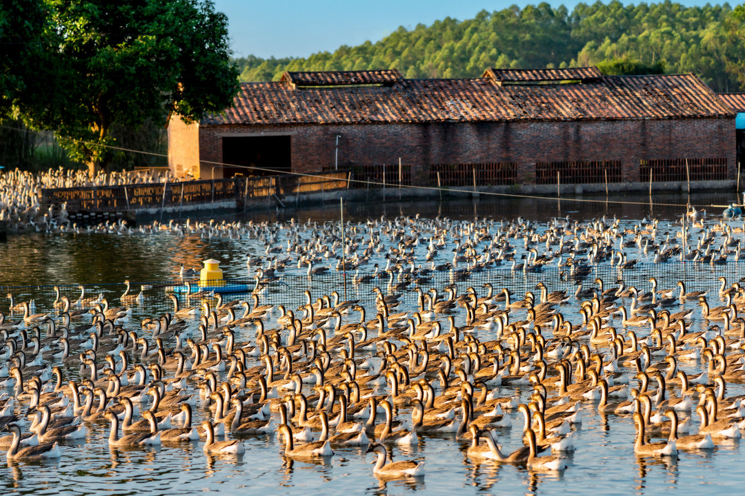 在明城镇苗迳畜禽现代养殖示范区,成群的三洲黑鹅体态优美;而在不远处的加工车间,这些鹅肉正被制作成各式预制菜。从智能养殖、中央屠宰、食品深加工,到品牌烧鹅店、文创产品,一只鹅的故事被演绎成了一条完整的产业链。这条产业链不仅连接了田间与车间,更连接了农户、合作社与龙头企业,让价值留在了当地,收益惠及了村民。