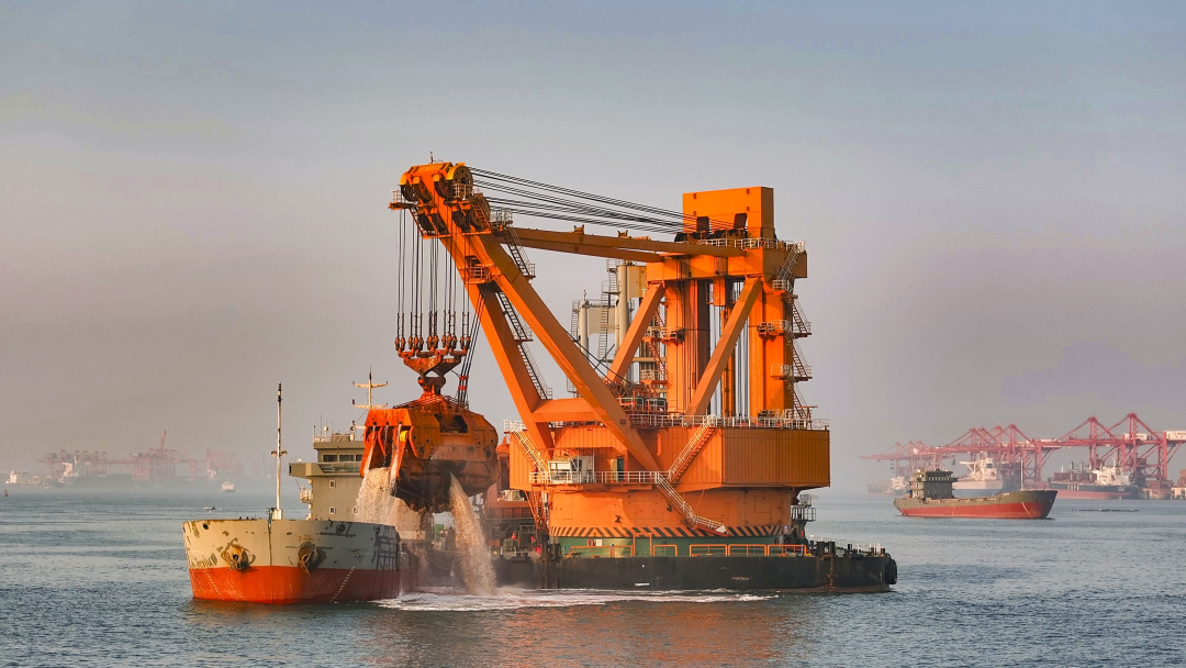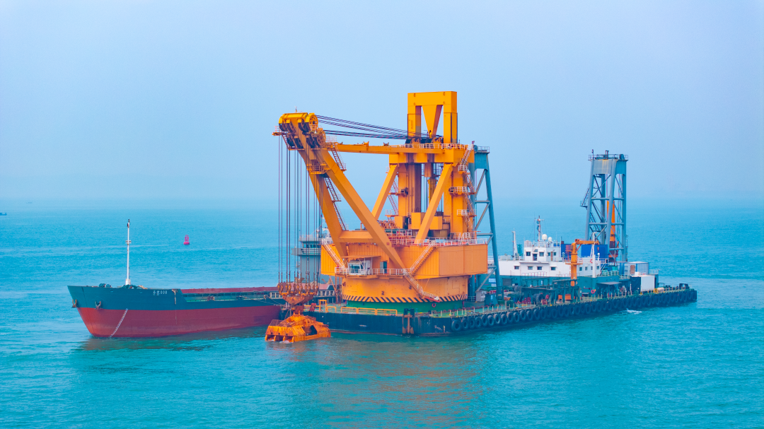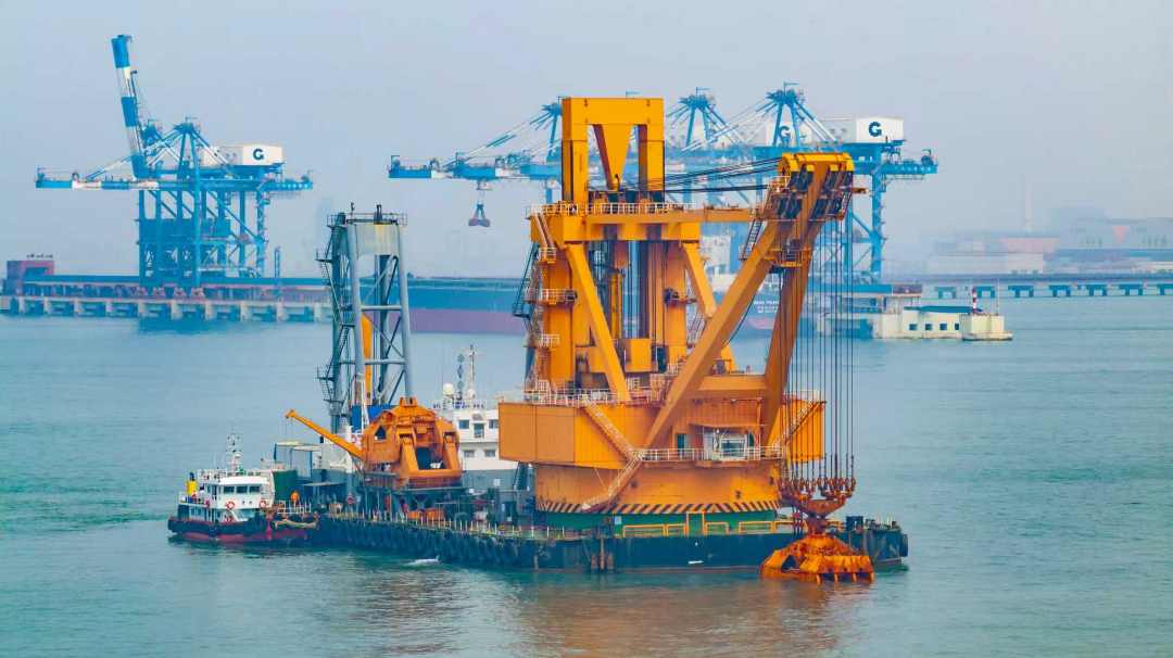 1月19日,位于广西北部湾海域的防城港航道,巨轮穿梭往来,碧波荡漾不息,一抹橘色格外醒目。世界最大的抓斗挖泥船“金广”如臂使指,高达200方斗容的抓斗快速而平稳地探入海底,抓起满斗硬岩,缓慢地倾倒在旁边的泥驳船上。