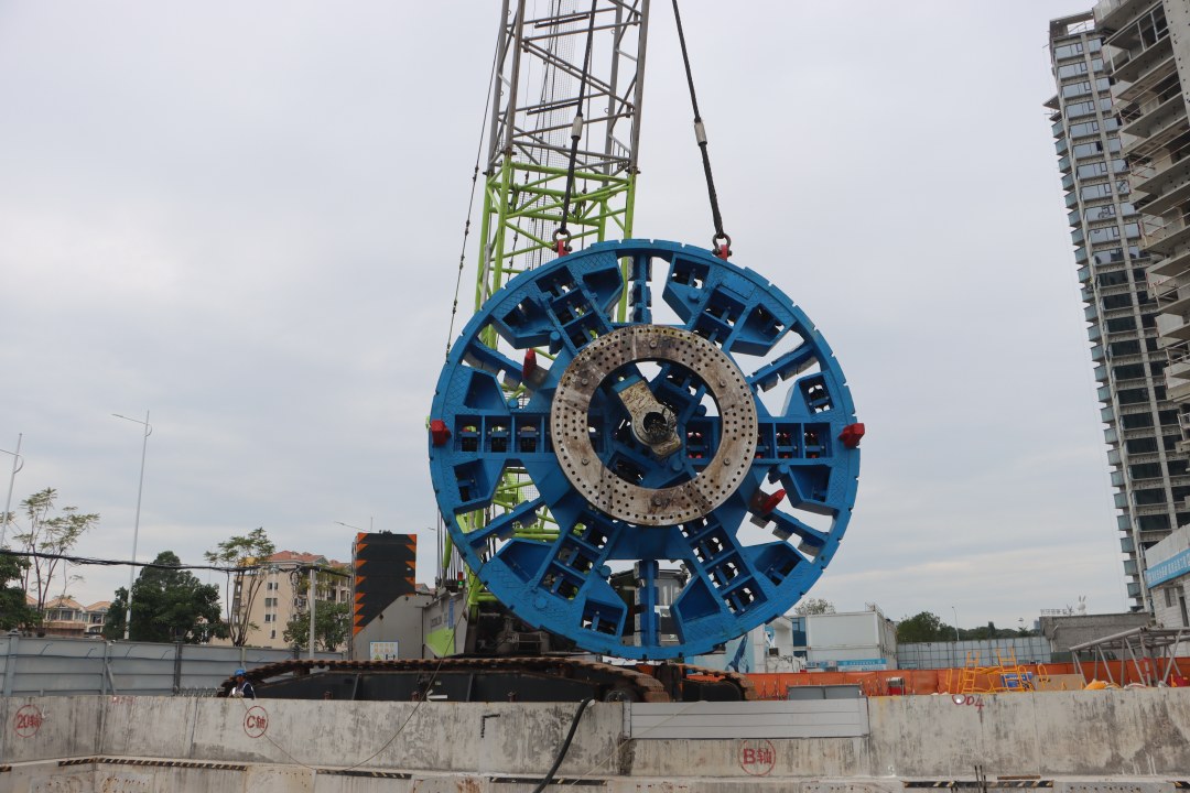该站岩溶见洞率超八成,建设团队采用“双液浆封边+高压旋喷止水”等系列工艺攻克富水砂层与异型深基坑难题;区间则投入土压/泥水平衡双模盾构,已提前注入4万立方米浆液加固地层。