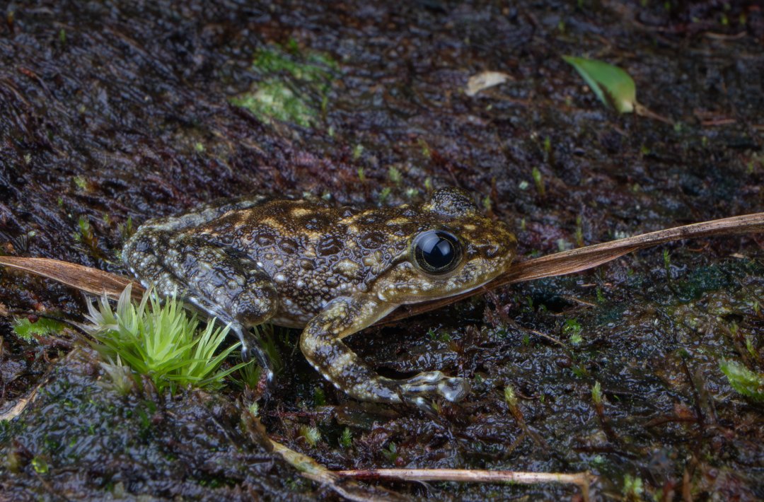 蛙科湍蛙属,趾端具吸盘,擅长攀附在急流岩石上,是典型的“激流专家”。