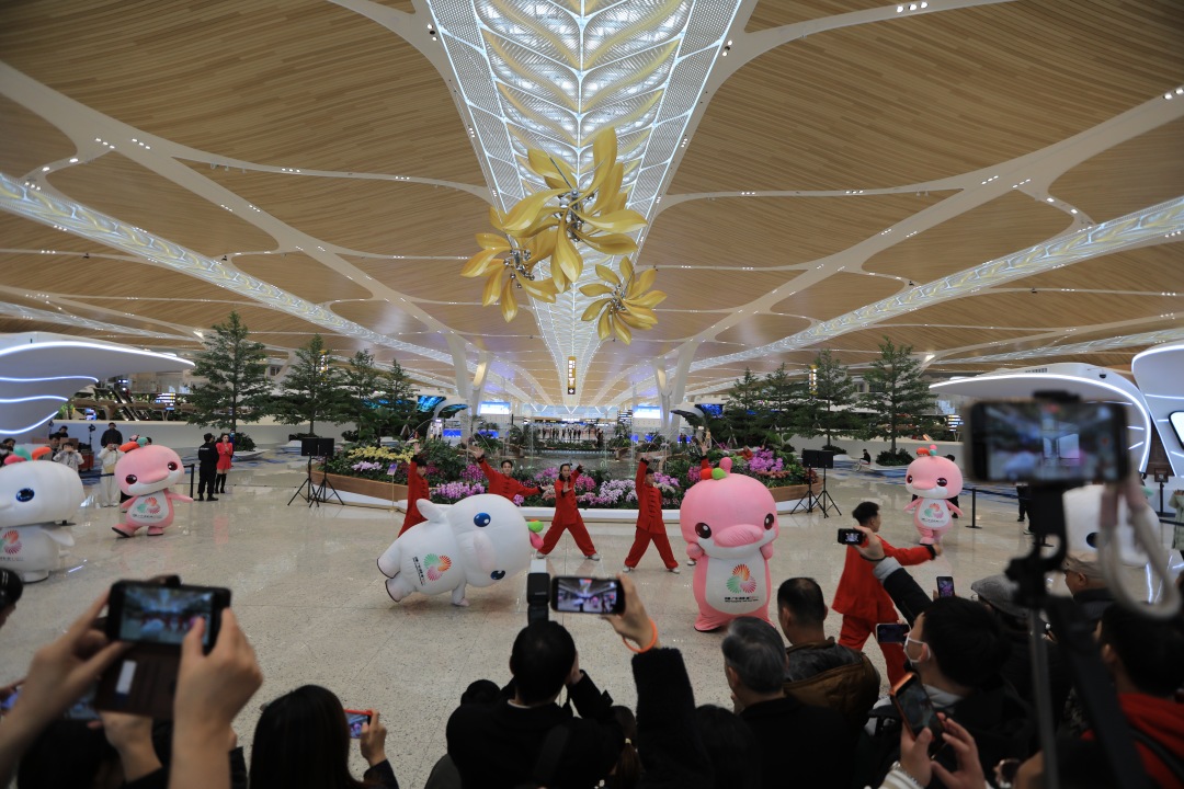 1月22日,白云机场T3航站楼迎来第二批航司集中入驻,国际业务全面开启,当天同步举办十五运会吉祥物“大湾鸡”快闪互动表演以及广东音乐五架头演奏、书法家挥春等岭南非遗展示,让旅客在出行途中沉浸式感受大湾区的多元文化魅力。