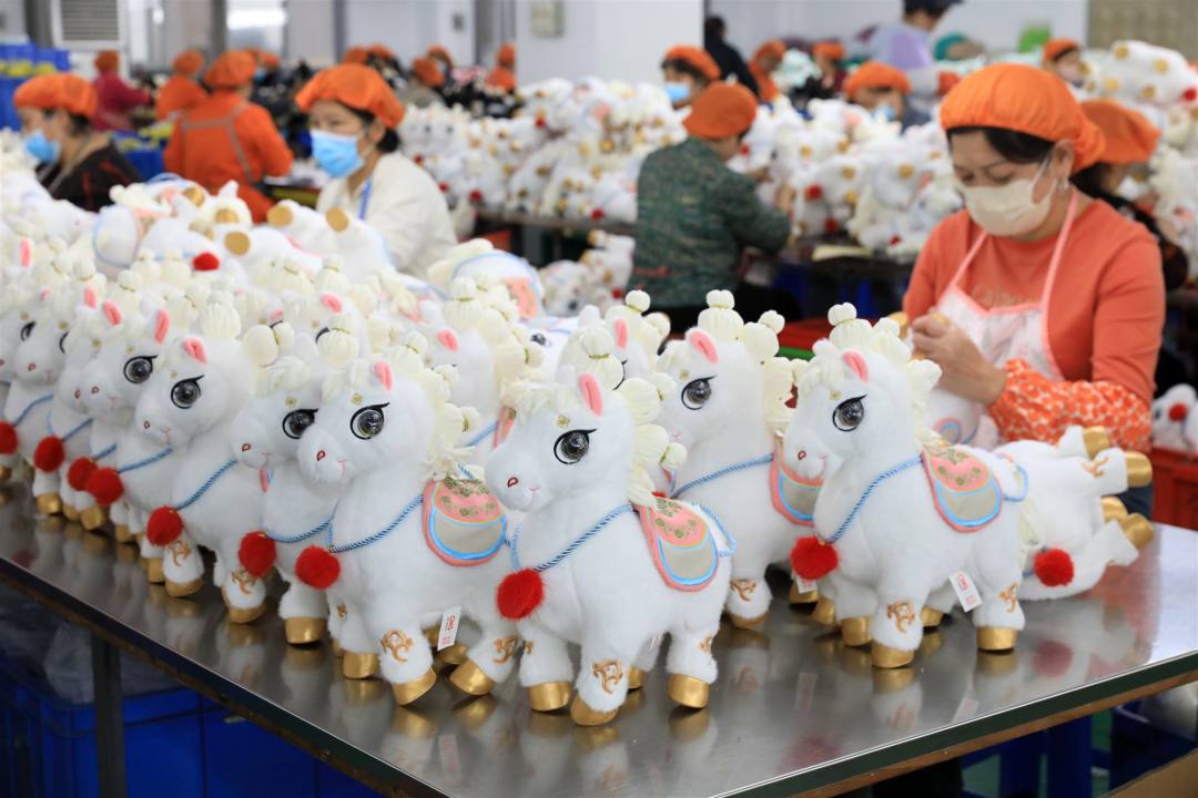 “吉祥马的生产极具挑战性,马头偏移设计、四腿非对称造型打破了毛绒玩具常规对称裁片的逻辑。”李琳表示,凭借近40年的玩具生产积淀与研发实力,团队攻克技术难关,样品顺利通过文化和旅游部及中央美院设计团队的审核。