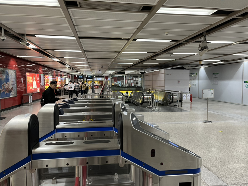 随着新线接入,车站空间同步调整。近日,记者在赤岗站看到,站厅闸机已重新布局,付费区与非付费区的区域划分也在同步更新,扶梯运行方向已作出调整。不过,八号线与十二号线衔接的围蔽区域尚未打开,未能一睹新线真容。